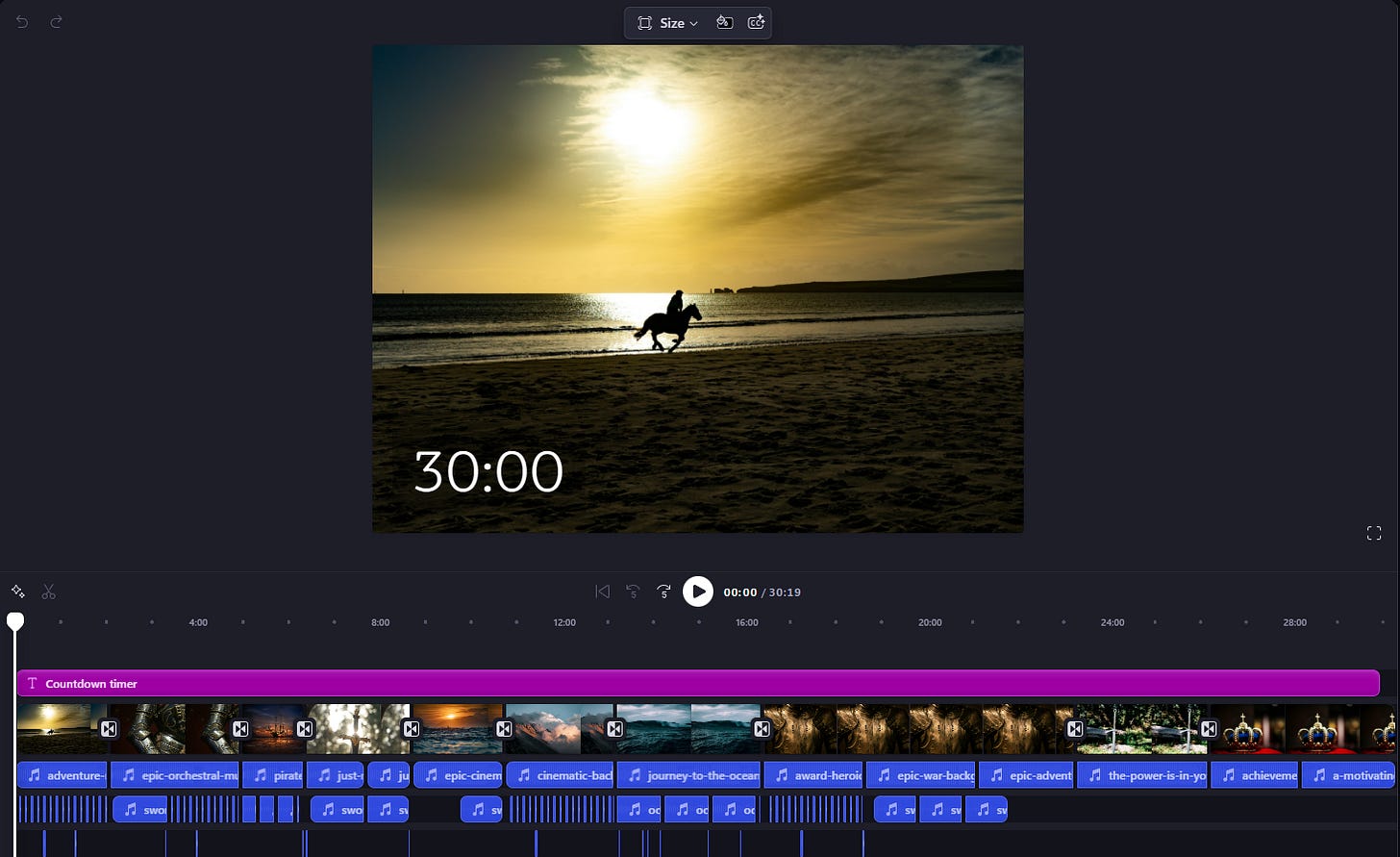 I'm so glad you asked, because I've recently started making immersive ambiance videos on Microsoft Clipchamp (a freemium tool) with royalty-free music and sound effects found on Pixabay.